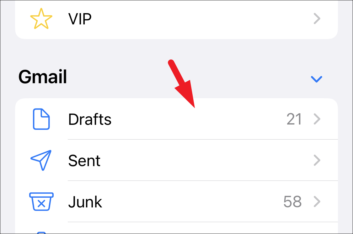 Next, locate and tap on the ‘Drafts’ option from the list to continue.