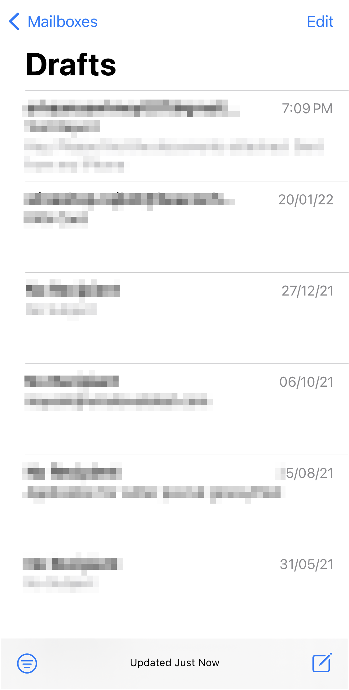 To access Drafts from your mail app, tap on the ‘Mailboxes’ button present in the top left corner.