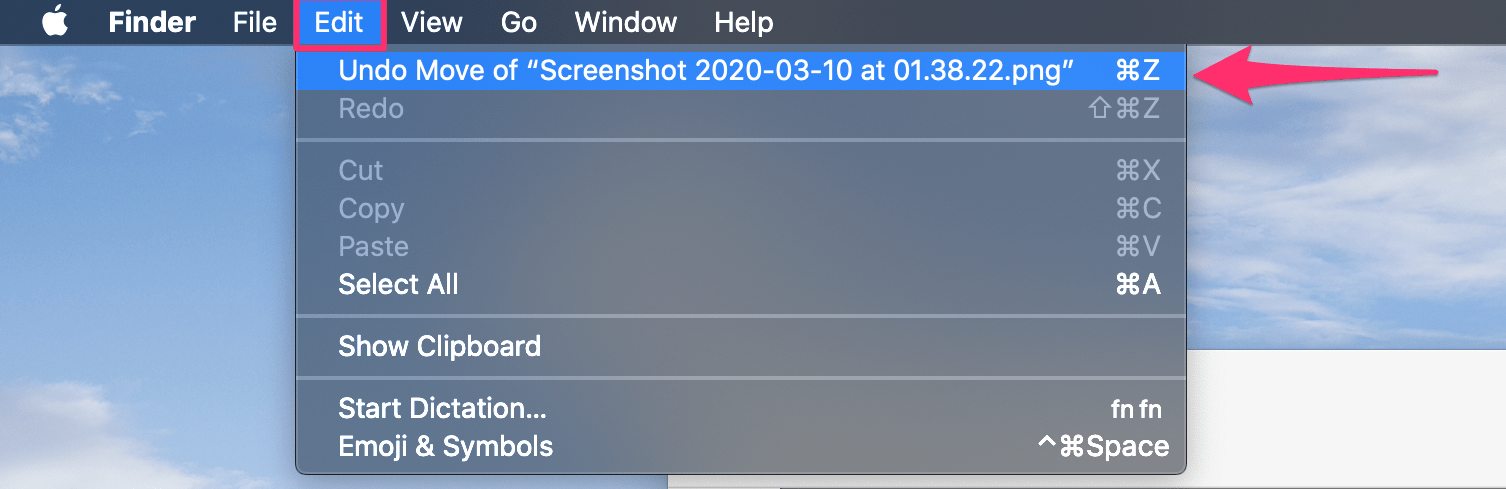 You can ‘Undo’ the last action/edit on Mac by pressing the Command + Z keys together on the keyboard.