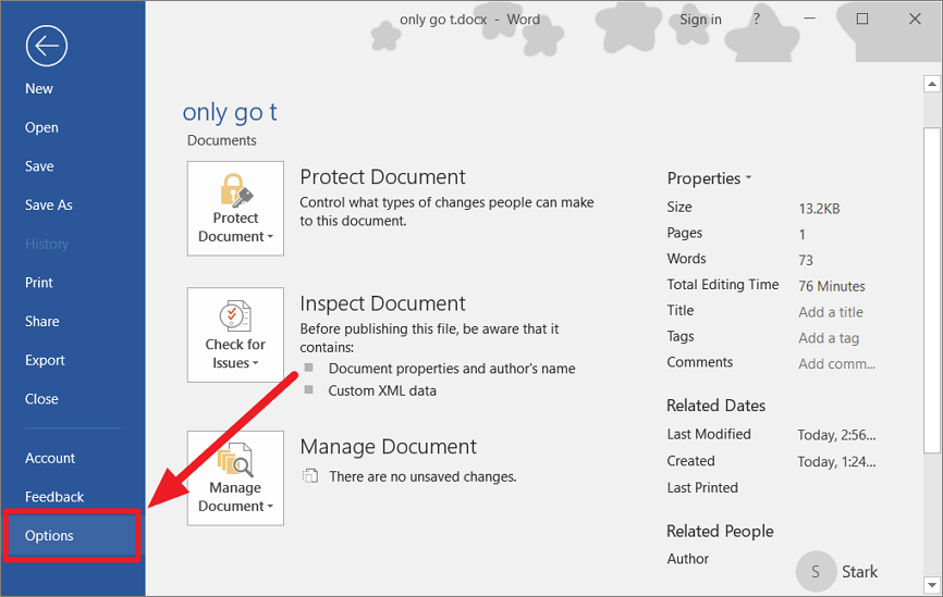 Step 1: Click on the 'File' tab in the Ribbon and select 'Options' from the menu.