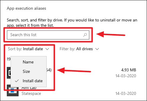 Step 3: On the Apps & features page, scroll through the list to find the app you wish to uninstall. You can also use the search box just above the list to quickly locate the app by name, or sort the apps by Install date if you're looking for a recently installed application.