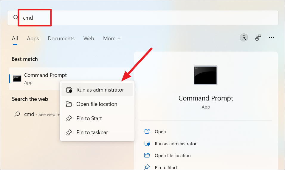 Step 1: Open the Start menu, search for Command Prompt, right-click it, and select Run as administrator. Confirm any prompts.