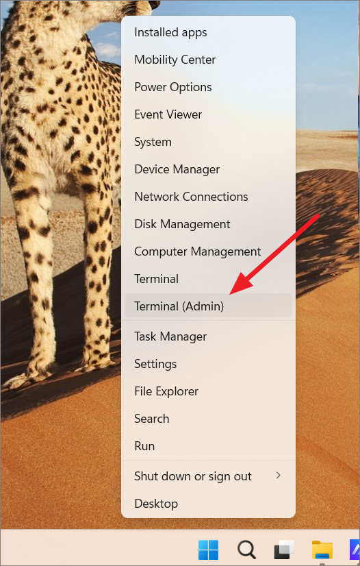 Step 1: Right-click the Start button and select Terminal (Admin) to open Windows Terminal with administrative privileges.