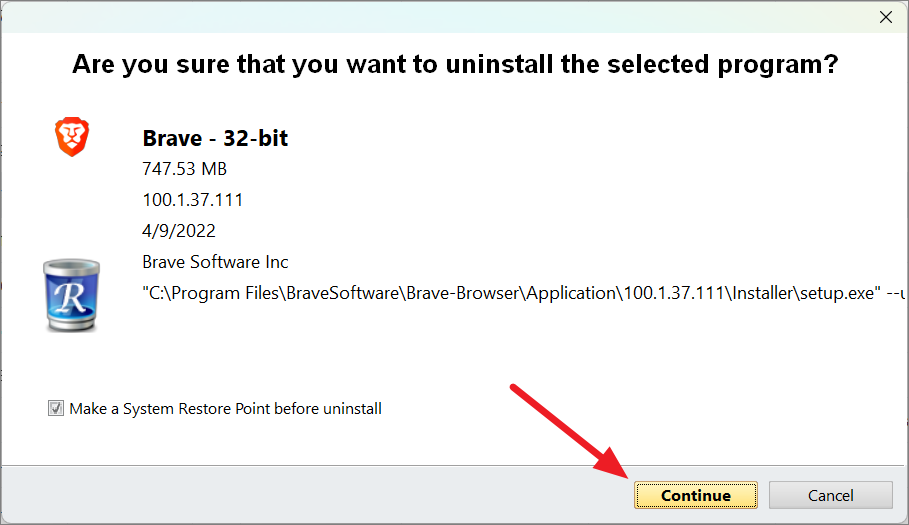 Step 3: Follow the prompts to create a restore point if desired, and proceed with the uninstallation.