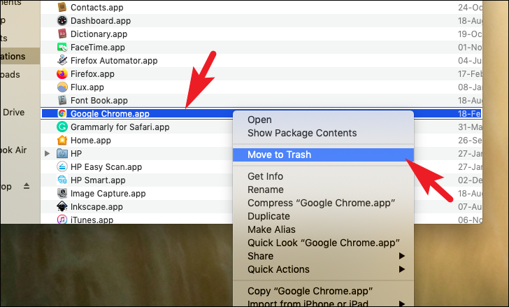 On any macOS device, uninstalling Chrome translates to simply heading to the ‘Applications’ folder on your device and sending it to the ‘Trash’. The rest of the supporting files can be deleted by using the Finder.