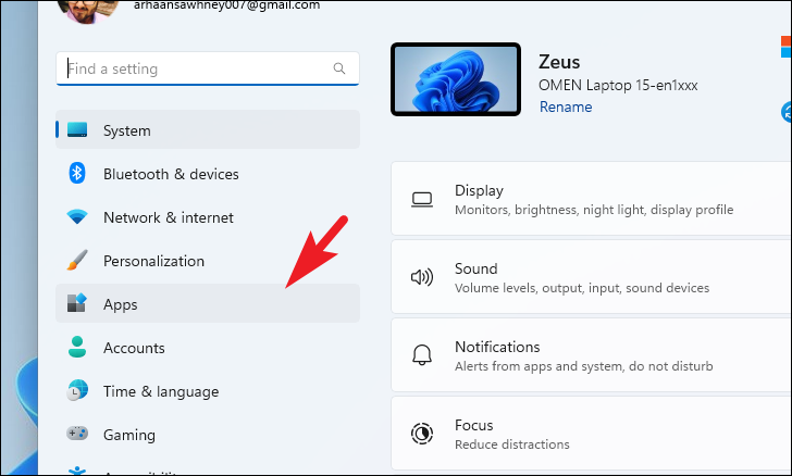 Step 2: In the Settings window, navigate to the left sidebar and click on the Apps tab.