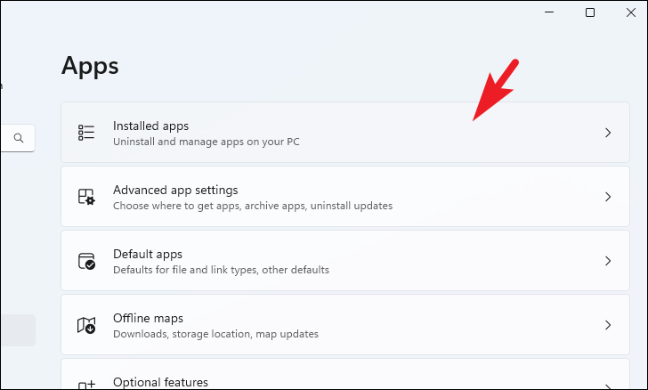 Step 3: On the right pane, select the Installed apps option. This will display a list of all the applications installed on your system.