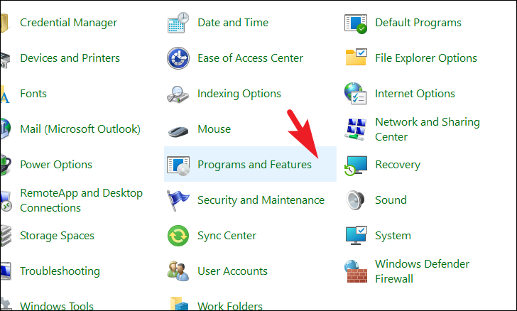 Step 2: In the Control Panel window, click on the Programs and Features option. If you don't see this option, make sure the "View by" setting is set to Large icons or Small icons.