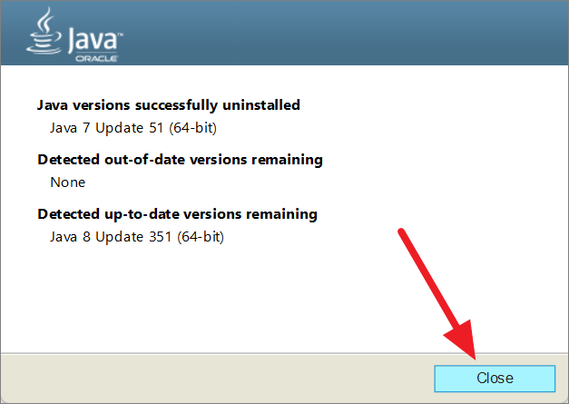 Note: After uninstalling Java or the Java Runtime Environment (JRE), any applications or websites that require Java to function will no longer work until you reinstall it.