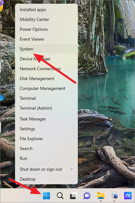 Step 1: Right-click on the Start menu and select System to open the About settings.