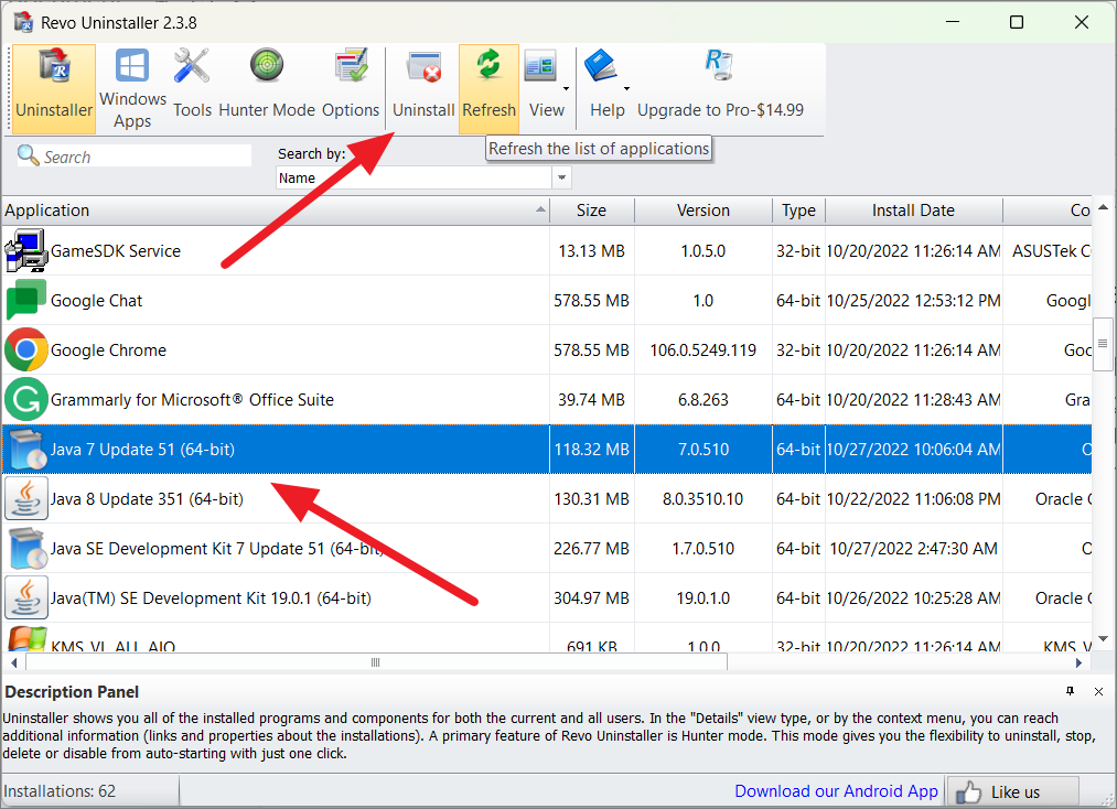 Step 2: Launch the uninstaller and select the Java version you wish to remove. Click on Uninstall.