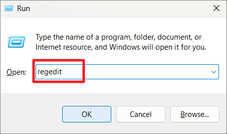 Step 1: Press Win + R to open the Run dialog box. Type regedit and press Enter to open the Registry Editor.