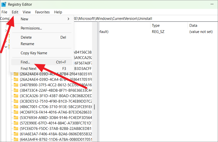 Step 3: Click on the Uninstall folder. Then, go to Edit > Find, or press Ctrl + F.