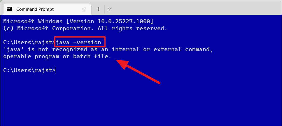 If Java has been uninstalled successfully, you will see the message: 'java' is not recognized as an internal or external command, operable program or batch file.