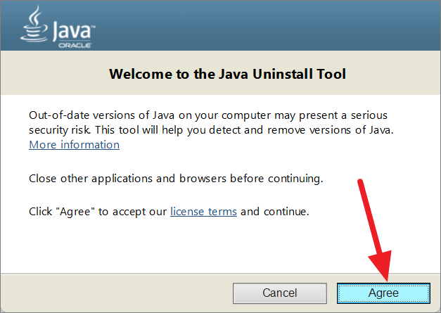 Step 1: Download the Java Uninstall Tool from the official Java website. On the webpage, click on I Agree to the Terms and want to Continue to start the download.