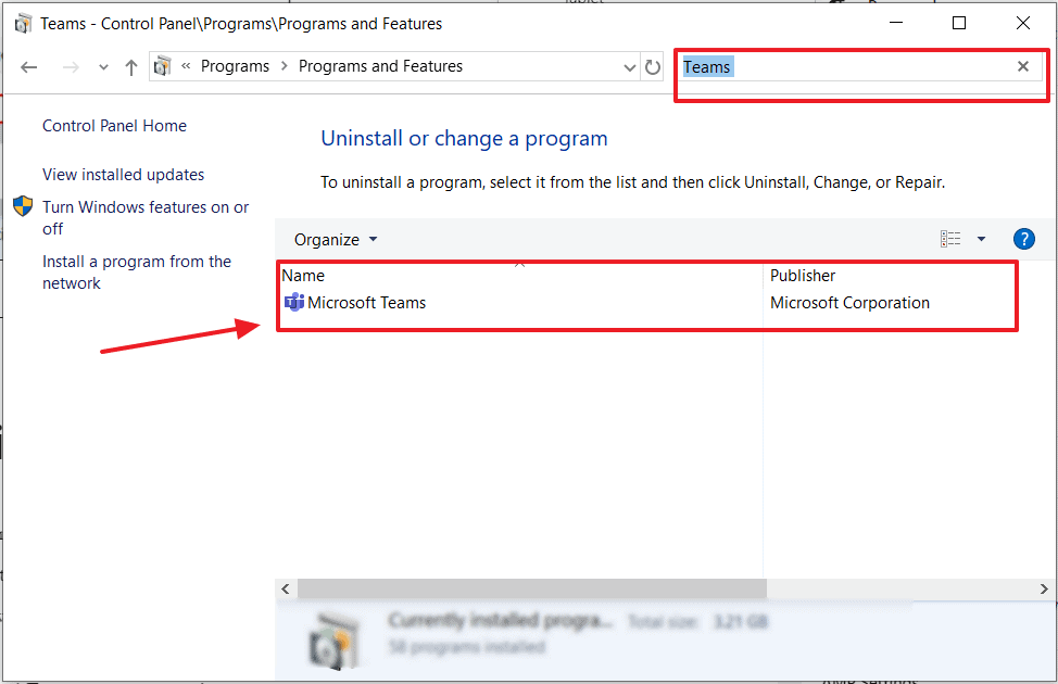 Similarly, uninstall the Microsoft Teams app again if it’s installed and listed on the screen.