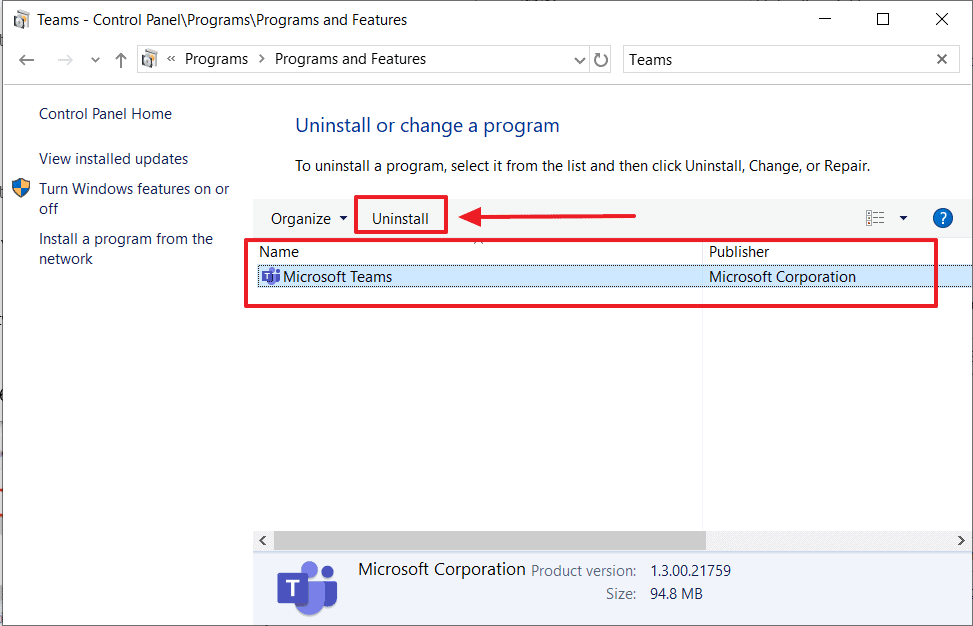 Click on Microsoft Teams app from the list. The ‘Uninstall’ button will appear in the toolbar on the screen. Click on it and uninstall the app from your computer.