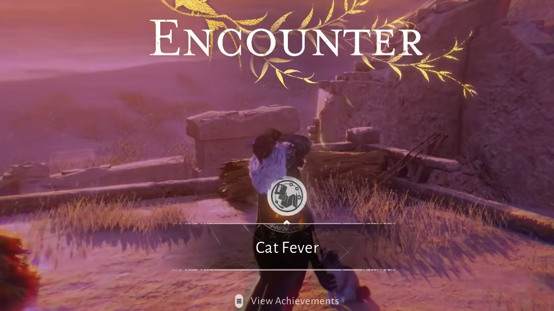 Step 2: Pet Pawsie five times. After the fifth interaction, your character contracts Cat Fever. The screen distorts briefly to signal the disease has taken hold, and the Encounter quest officially begins.