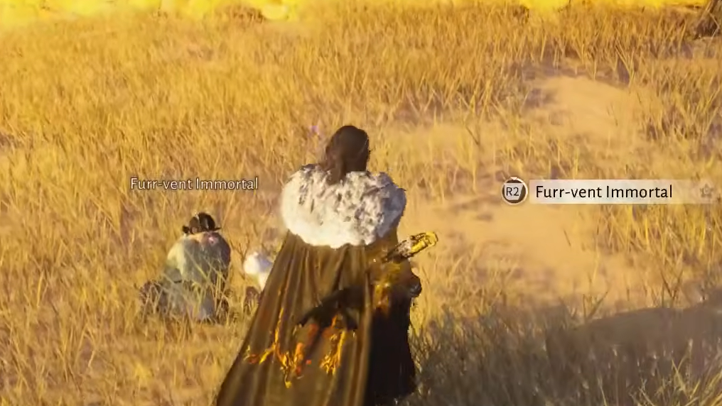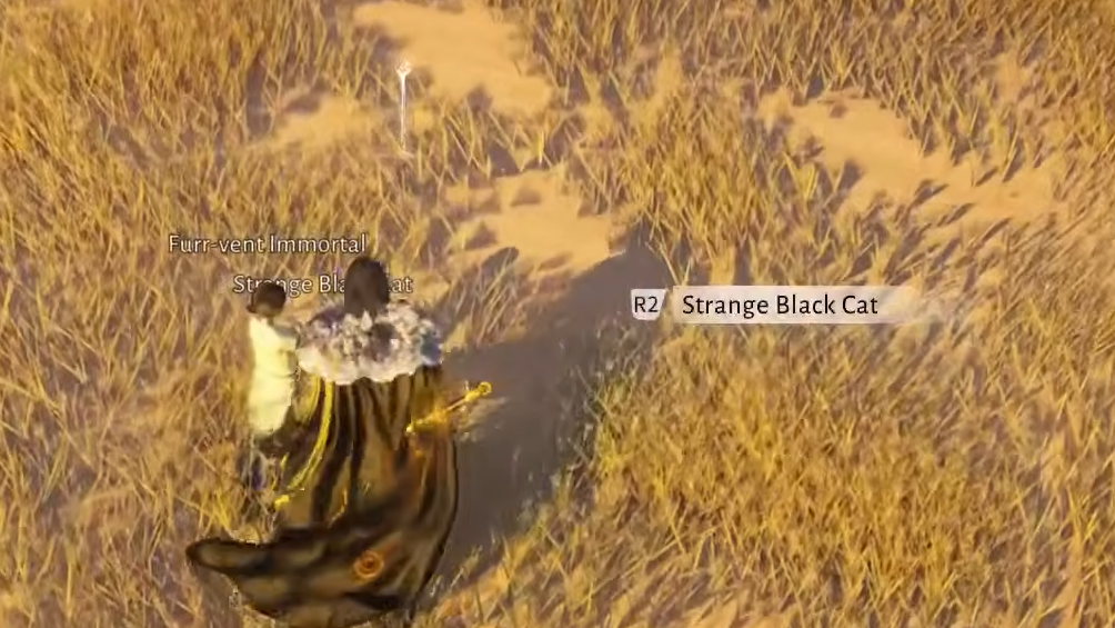 Step 1: Follow the quest marker to the Furr-vent Immortal, an NPC found petting a white cat nearby. Speak with them about your newly acquired Cat Fever.