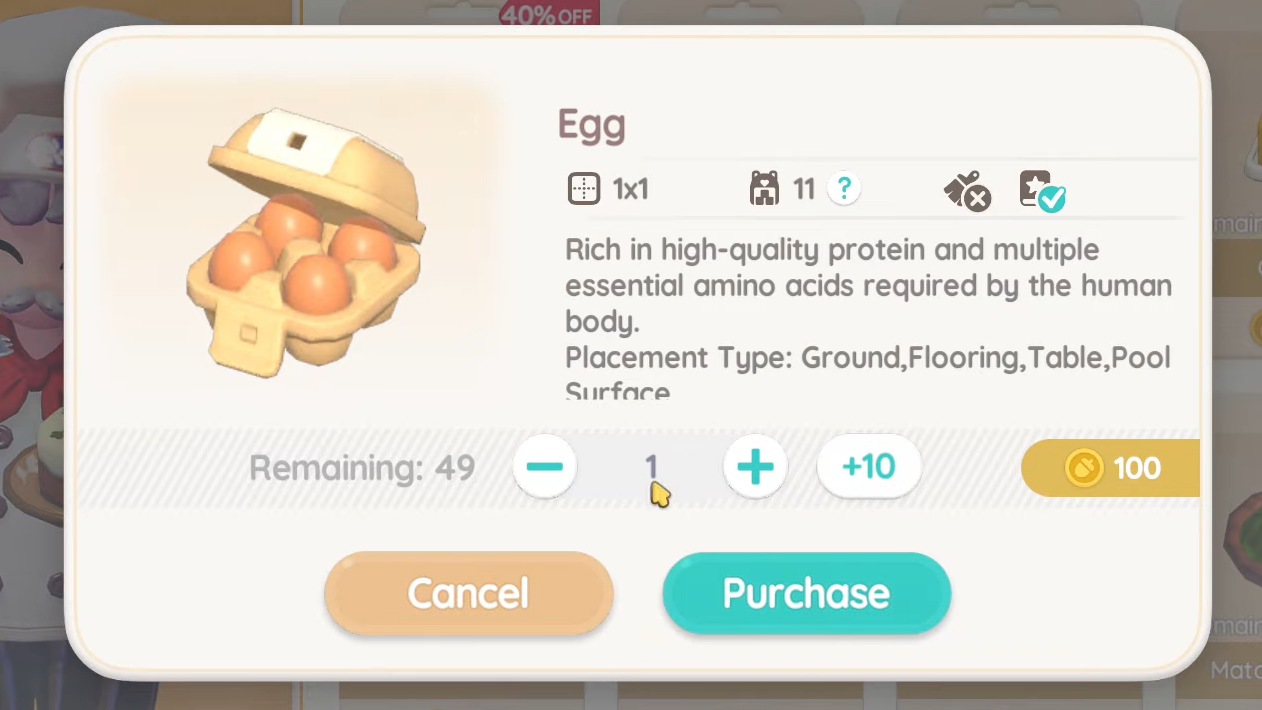 Step 3: Purchase an egg. Eggs are sold for 100 Gold each.