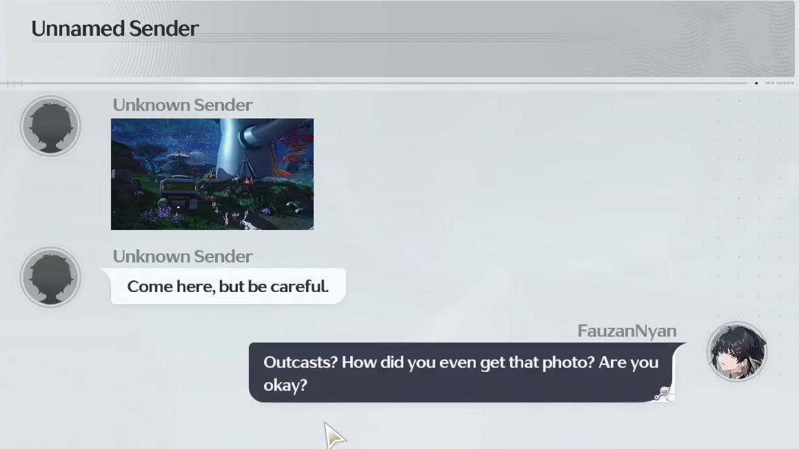 Step 3: After the time skip, check WavesLine again. The same unknown sender will now push a new message containing a photo of an Outcast camp and asking you to come over. When you accept or track the objective, the WavesLine Insider Side Quest is officially added to your log.