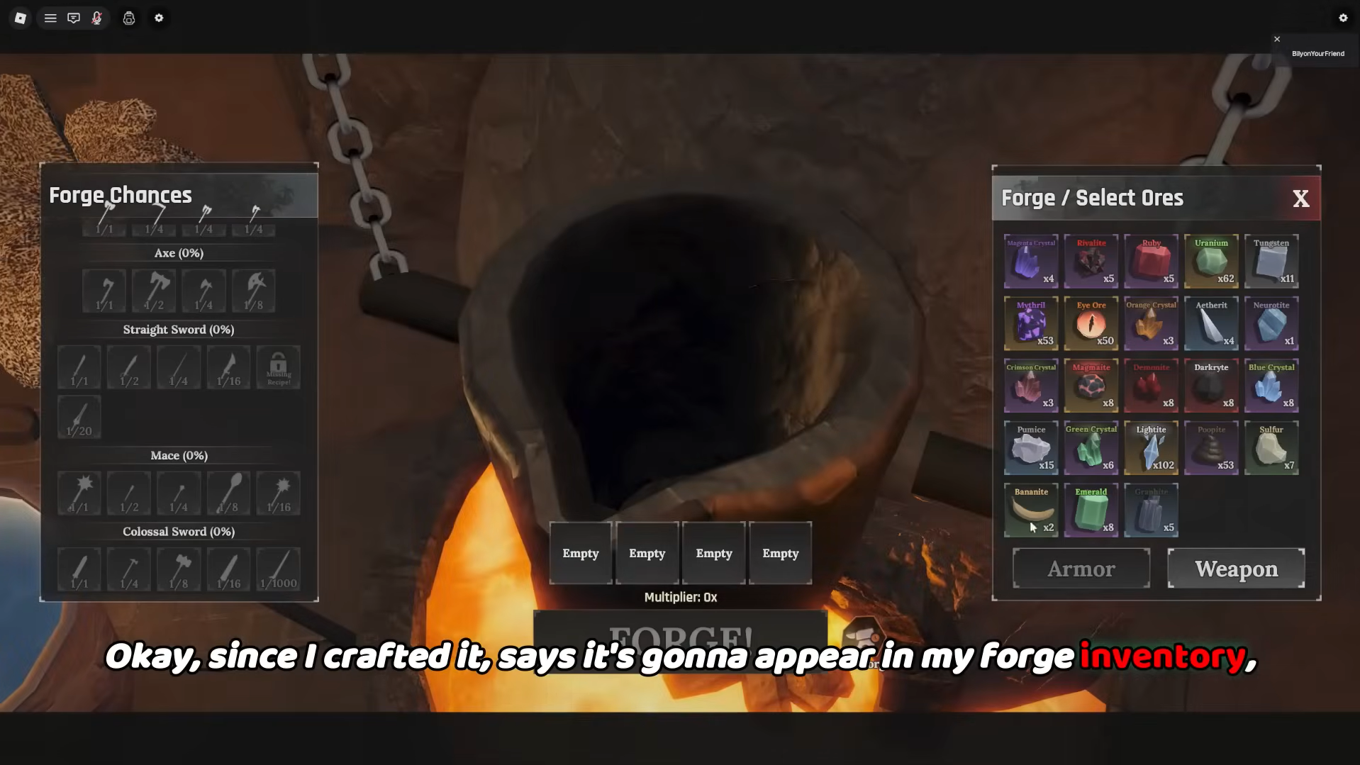 Step 2: Load your recipe with higher-rarity ores, ideally legendary or better. Players who successfully rolled Hell Slayer typically used Frostpire Expanse ores they had been hoarding, such as high-multiplier legendary and mythical ores, even when the resulting stats were not perfect.