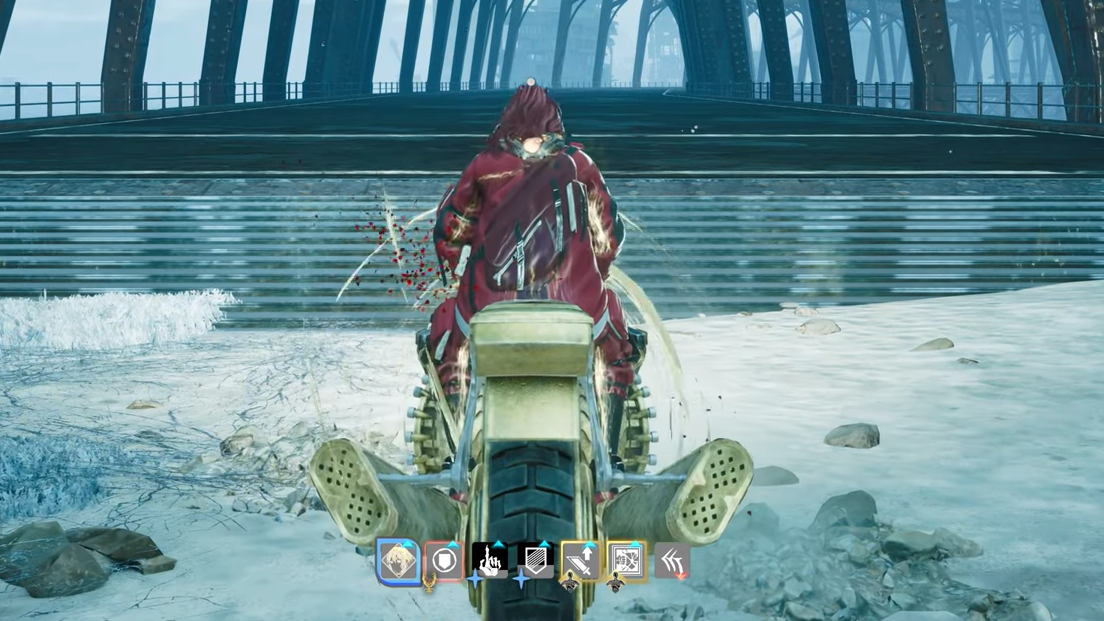 When you jump off the bike, it doesn't disappear immediately. Instead, it trails forward for a second, keeping all its physical properties. You can line up a jump-off to send the motorcycle hurtling into grouped enemies, knocking them down and giving you time to set up attacks while they're vulnerable.