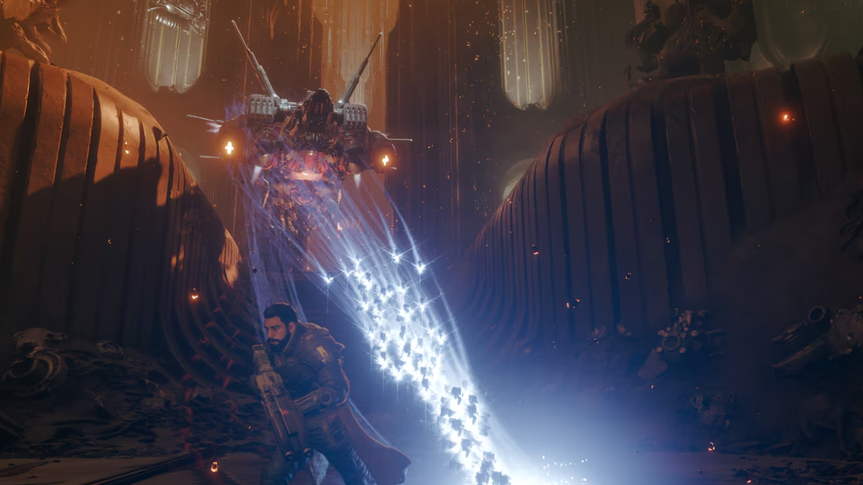 Step 3: In the Passage, walk up to Primary, the Soltari bot that handles decisions on Soltari's behalf on Carcosa. Press Triangle to open the interaction.