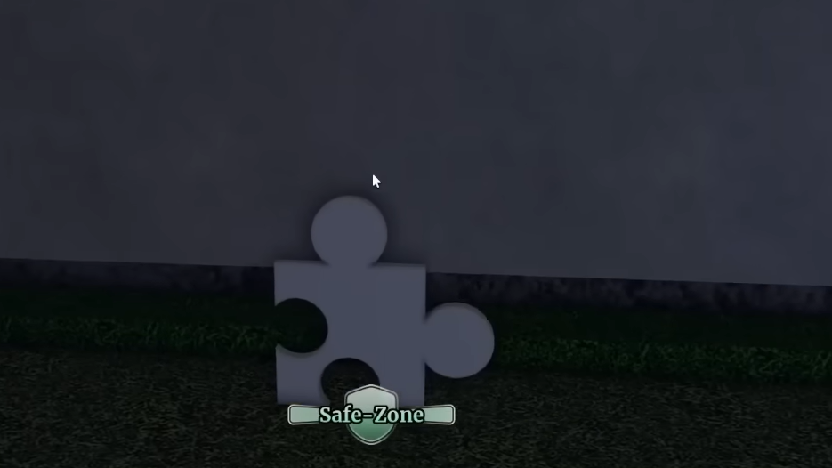 On Starter Island, locate the house with a red roof on the right side of the island, opposite the Katana merchant. Walk behind this house to find the first puzzle piece on the ground. Interact with it to collect it.
