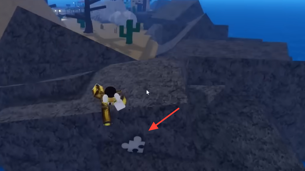 The six puzzle pieces are spread across six islands. You can collect them in any order, but following an efficient route saves time. The recommended path is: Starter Island → Jungle Island → Desert Island → Snow Island → Shibuya Station → Hueco Mundo.