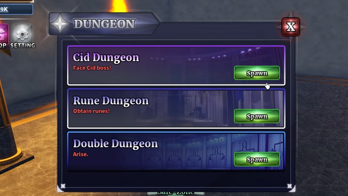 After unlocking dungeons and obtaining at least one Dungeon Key, travel to Dungeon Island. Interact with the dungeon portal to open the spawn menu. Select the dungeon type you want to enter and press the Spawn button. The key in your inventory will be consumed immediately, and you will be transported into the dungeon.