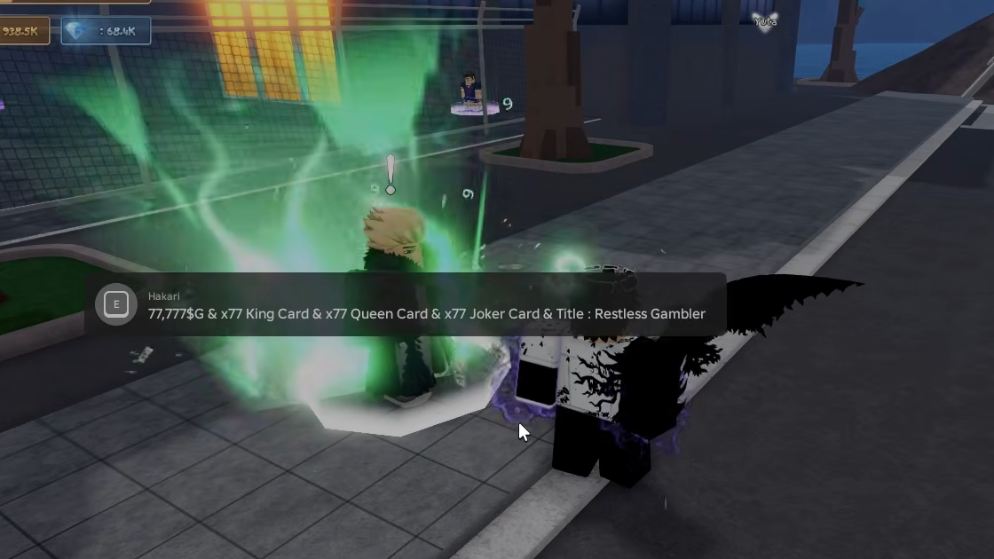 The Restless Gambler title is the final requirement. It drops from the Hakari boss at a 5 percent rate, making it the rarest item on the list. Alternatively, you can obtain it from the Arcade Gacha at a 3.5 percent chance by spending gems to roll.
