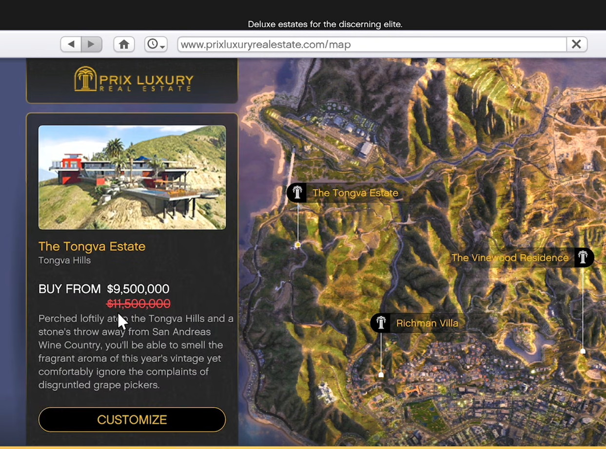 Step 1: Open the in-game internet on your phone, go to the prixluxuryrealestate.com listing, and pick one of the three mansion properties. Customize it as you like; decor and upgrades do not affect mission access.