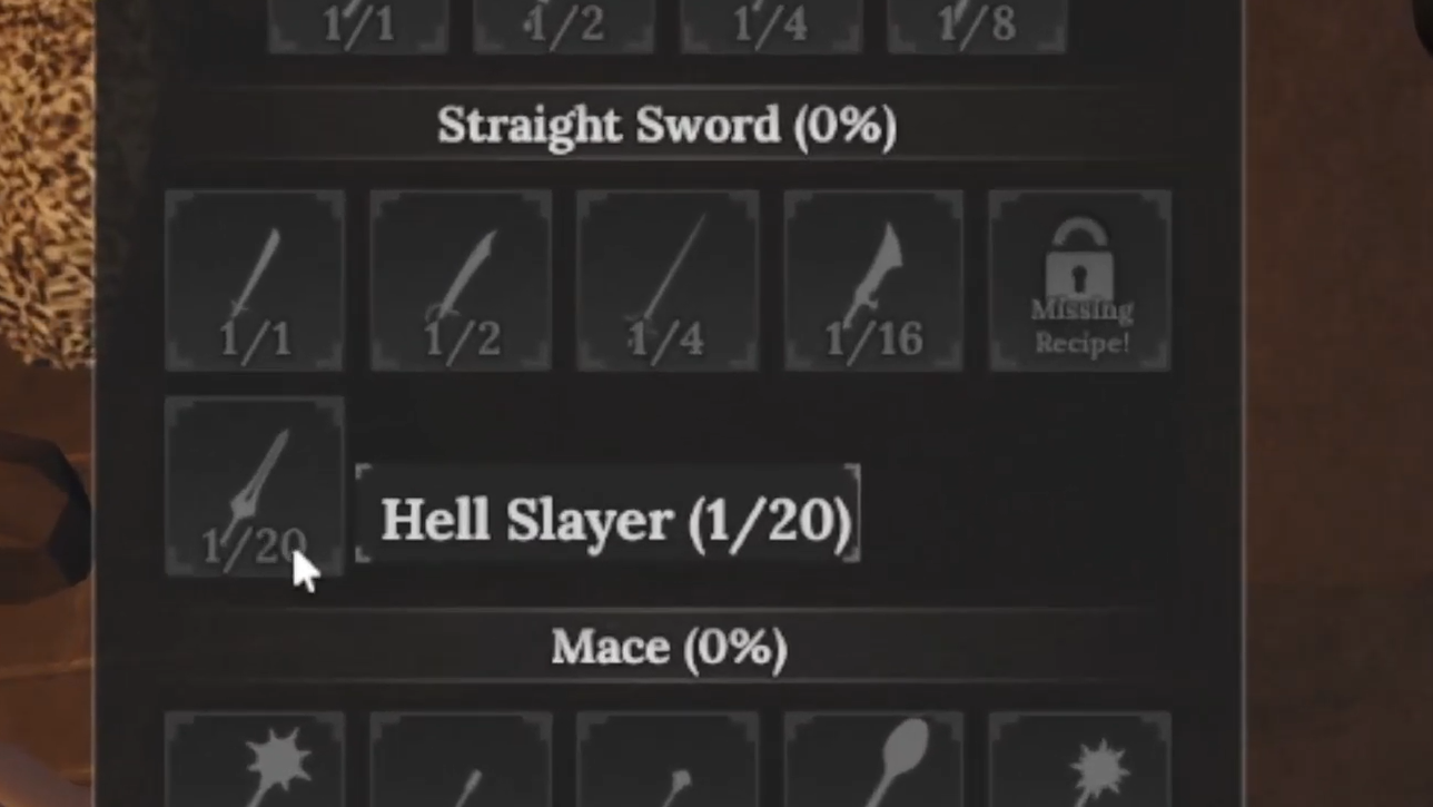 Checking that the missing Straight Sword recipes are unlocked