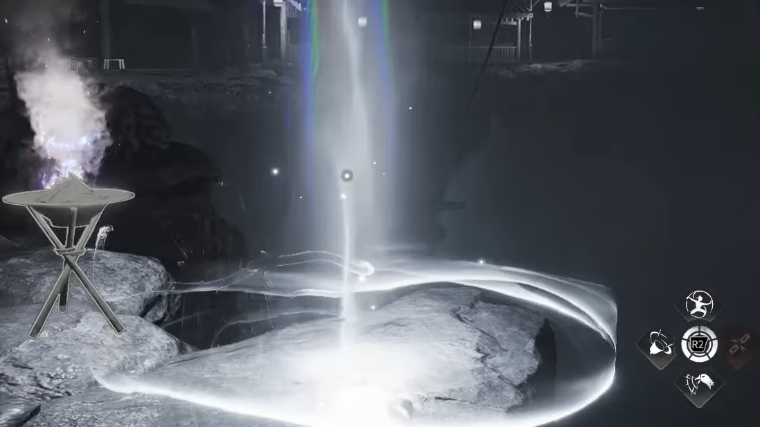 Step 2: After the teleport, turn right at the fire pit and follow the path. Keep moving until you reach the lantern over the water.