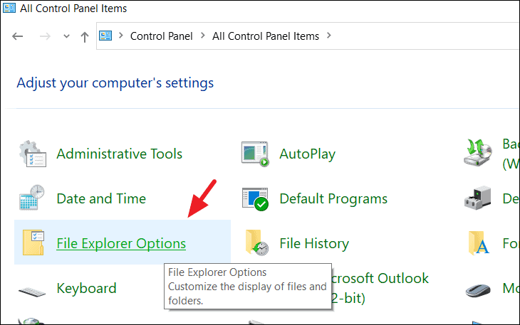 Step 1: Navigate to the Control Panel on your computer and select File Explorer Options.