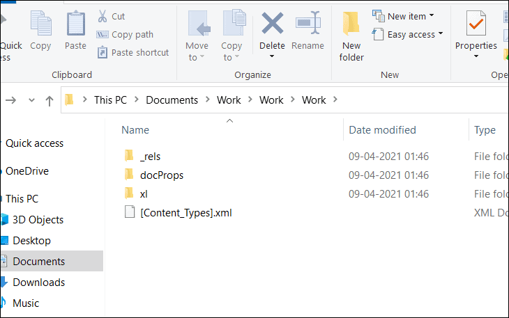 Step 5: Inside the xl folder, open the worksheets directory. You'll see a list of XML files representing each sheet in the workbook.