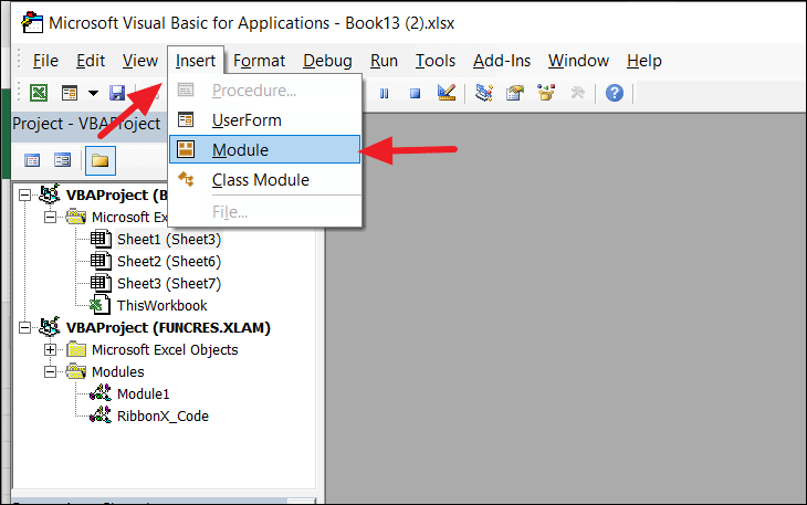 Step 4: In the VBA editor, click on Insert and select Module from the dropdown menu.