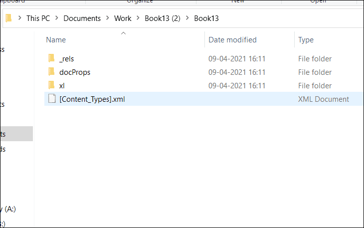 Step 4: Open the renamed zip file. Navigate to the xl folder to access the workbook's contents.