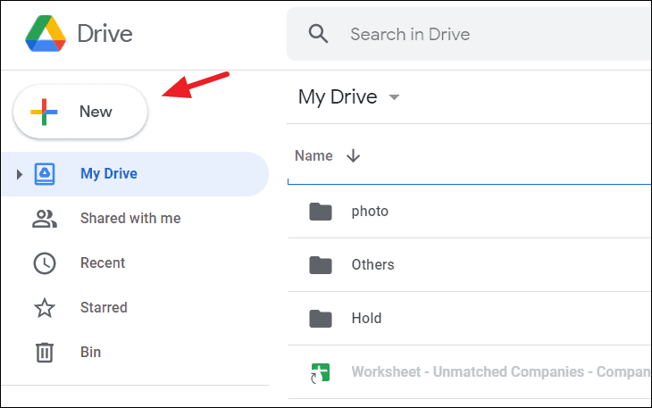 Step 1: Log in to your Google Drive account. Click on the New button located at the top-left corner of the page.