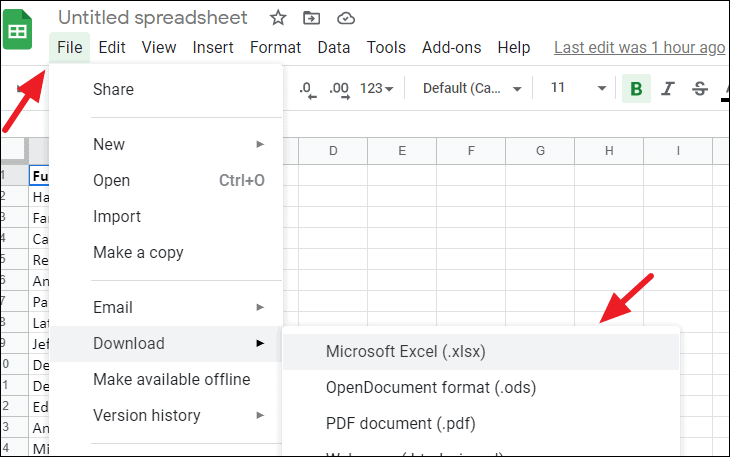 Step 8: To save the unprotected file back to Excel format, click on File, select Download, and choose Microsoft Excel (.xlsx).
