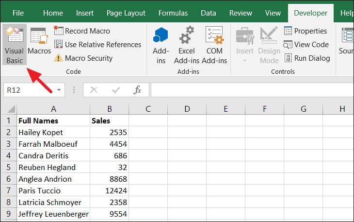 Step 3: Click on Visual Basic to open the VBA editor.