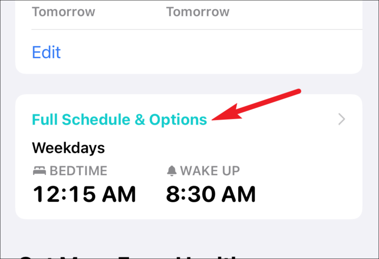 In the sleep settings, see if you have a schedule. Tap ‘Full Schedule & Options’ to see all the details.