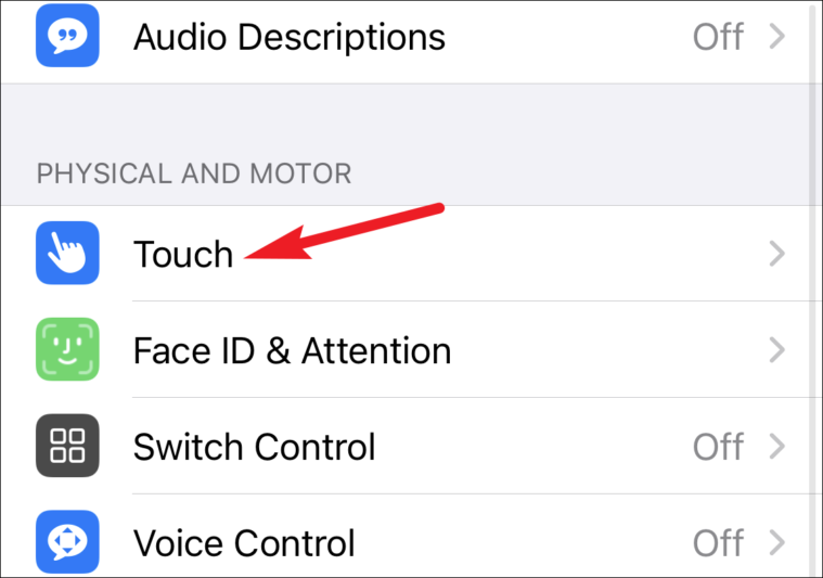 Then, go to ‘Touch’.