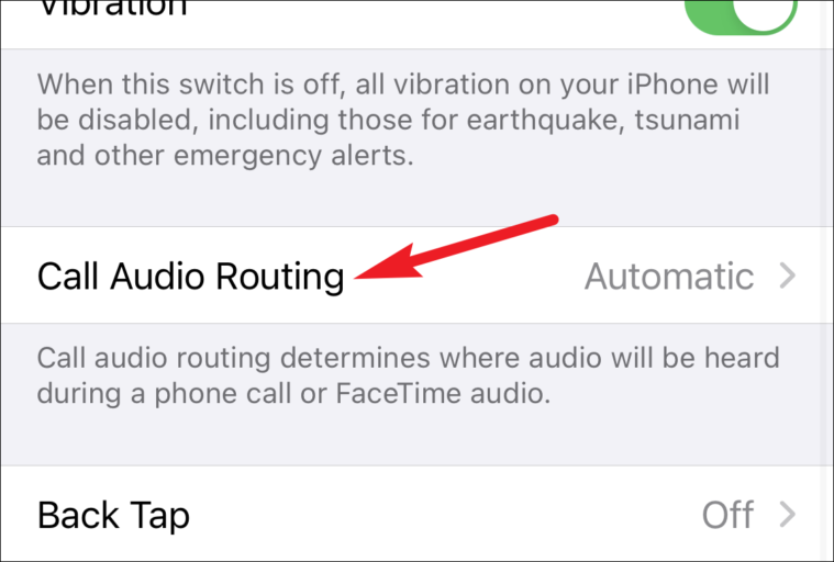 Find and tap the option for ‘Call Audio Routing’ and tap on it.