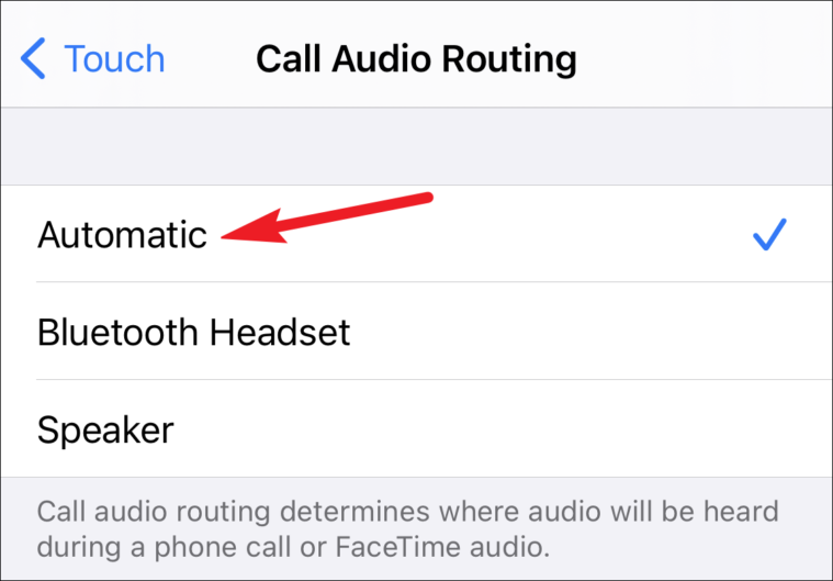 Open the ‘Call Audio Routing’ option from Accessibility. Make sure that it is set to ‘Automatic’.