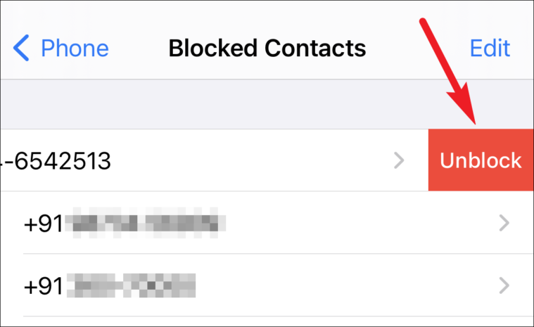 If the number you’re missing calls from is on the list of blocked contacts, unblock it. Swipe left on the number, and then tap on ‘Unblock’.