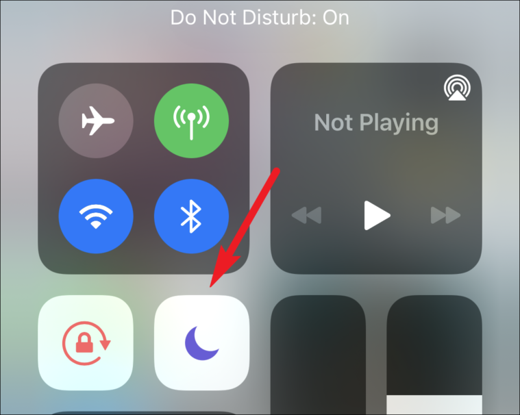 Swipe down from the upper-right corner (for iPhones with a notch) or the bottom of the screen (for iPhones without a notch) to bring up the Control Center. Now, check that the button for DND (crescent moon icon) is not on.
