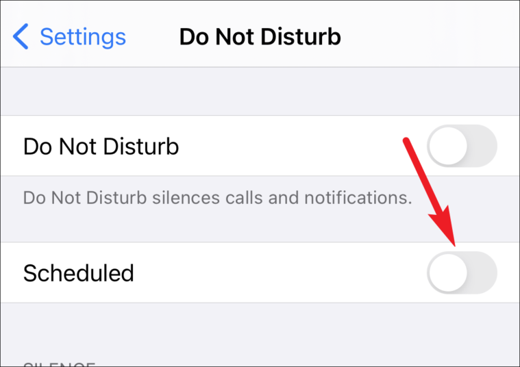 Additionally, make sure that you don’t have Do Not Disturb on a schedule. Open settings from your iPhone and tap ‘Do Not Disturb’.