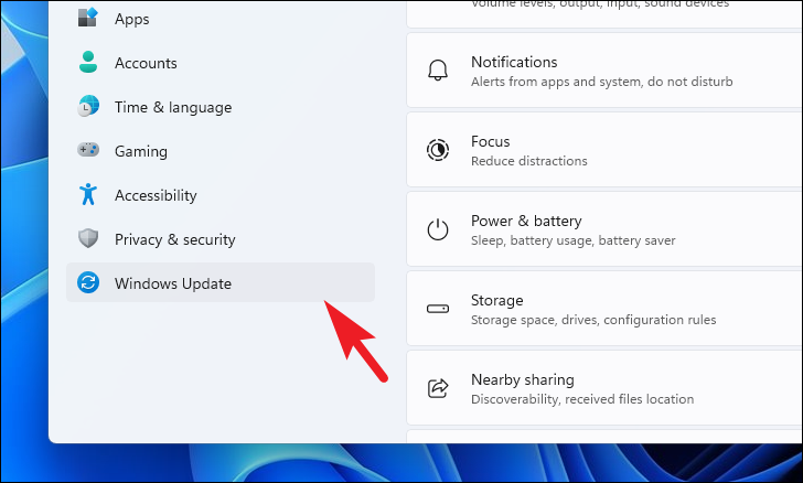 Step 2: In the Settings window, select "Windows Update" from the left-hand sidebar.